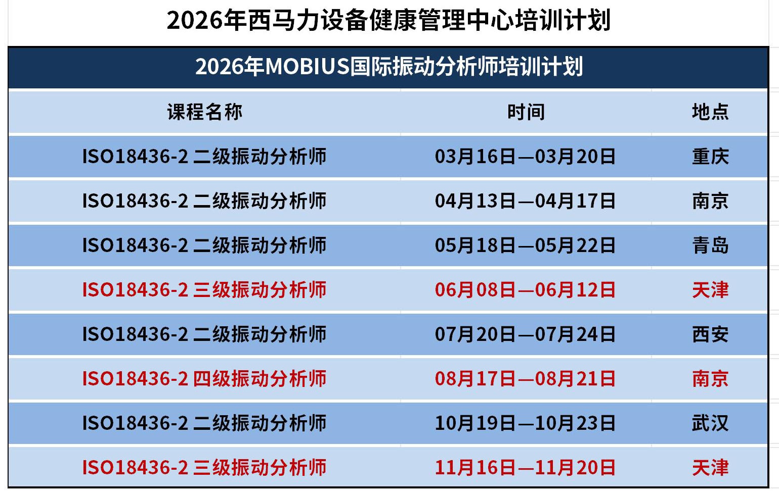 招生等级:振动分析师一至四级培训,考试通过会后获得Mobius颁发的振动分析师认证证书。